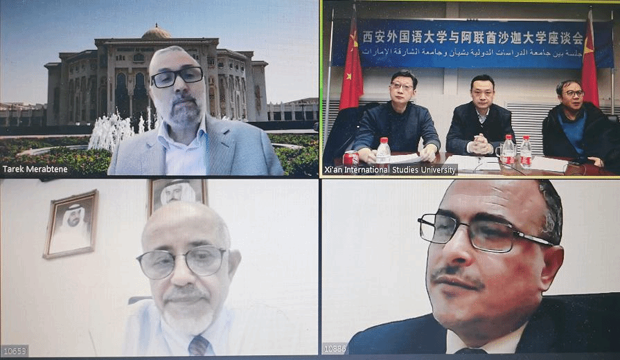2月2日(大年初二)下午,我校与阿联酋沙迦大学举行第二次线上座谈会,就我校与阿联酋沙迦大学合作举办“阿拉伯语专业本科教育项目”的管理及教学工作进行交流。沙迦大学国际部负责人塔瑞克、人文社会学院院长侯赛因、曾来我校为该项目授课的教授菲克里、我校副校长吴耀武、国际处处长景楠、亚非学院院长马福德参会。