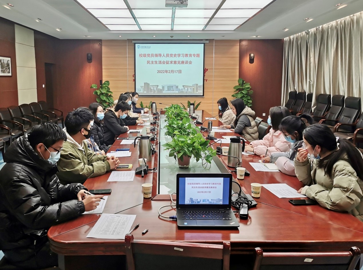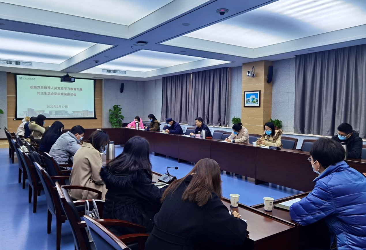 为高质量开好学校领导班子党史学习教育专题民主生活会,找准找实领导班子存在问题,2022年2月17日,校党委组织部、教师工作部、统战部、学工部以线下线上相结合方式,组织召开了专业教师、行政人员、统战人士和学生代表四场座谈会,广泛征求广大师生的意见建议。