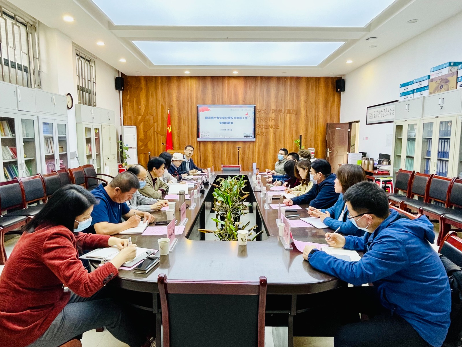 2022年4月6日,我校翻译博士专业学位授权点申报工作安排部署会在教学楼I区105会议室召开。副校长党争胜出席并主持会议,学科建设办公室、科研处、英文学院、欧洲学院、亚非学院、日文学院、俄语学院、外国语言文学研究院、高级翻译学院等单位负责人及教师代表参加会议。