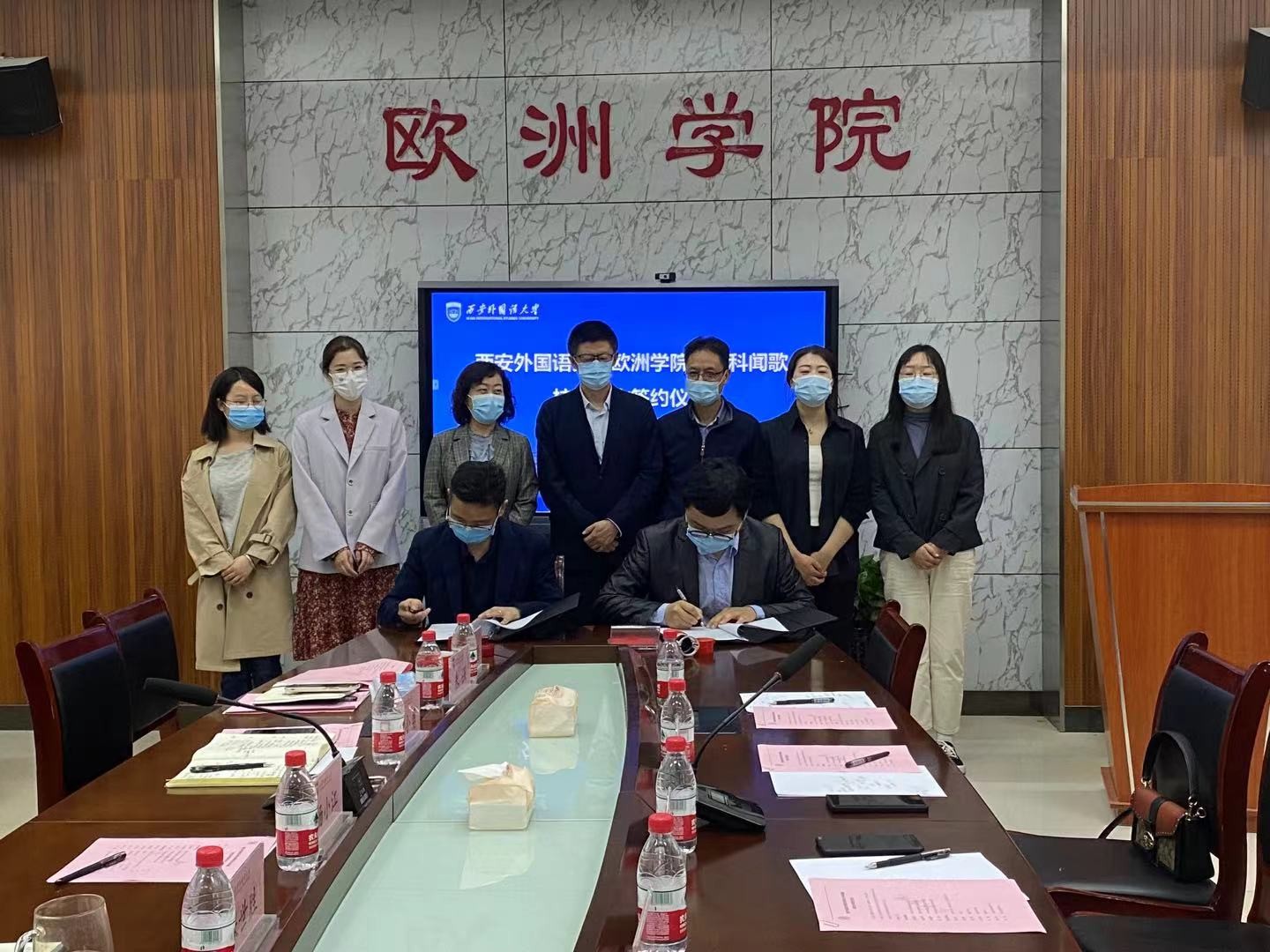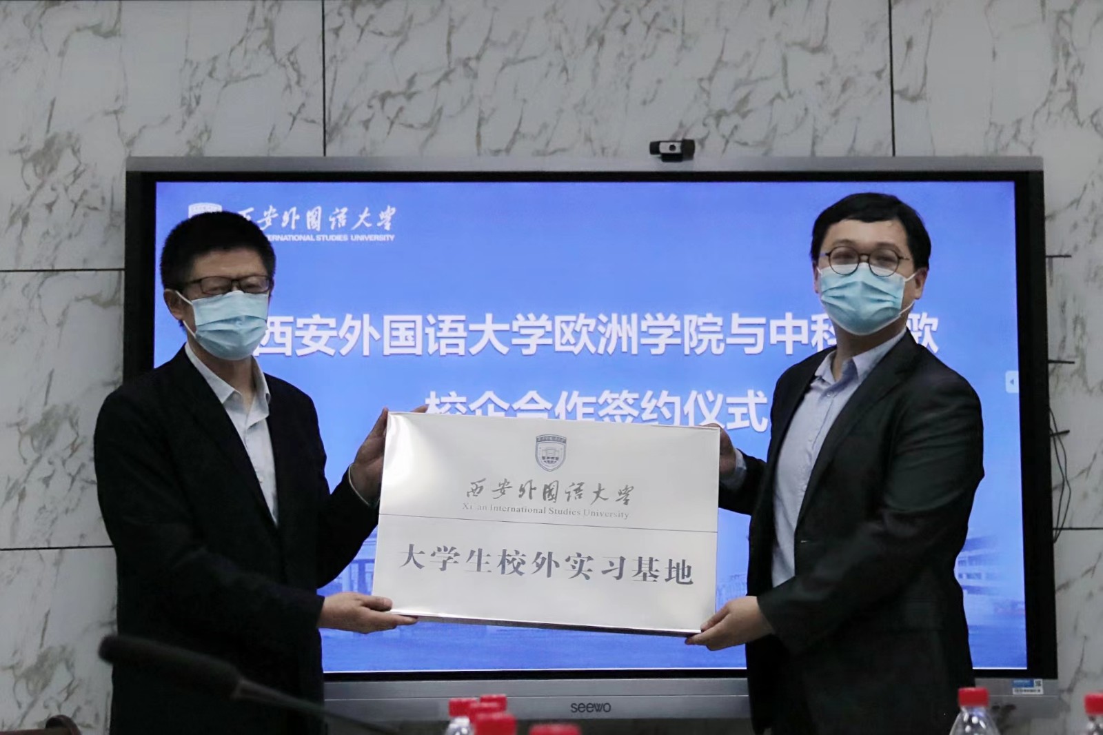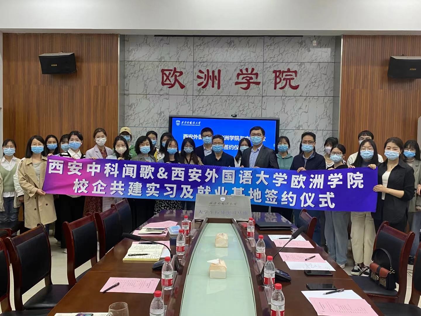 为进一步促进学生就业工作,落实学校访企拓岗促就业专项行动工作安排,4月12日下午,欧洲学院邀请西安中科闻歌科技有限公司来校开展校企共建活动,举行了校外实习基地授牌仪式。西安中科闻歌副总经理徐道星,我校学工部·学生处·武装部副部长杨小江,欧洲学院领导班子及辅导员代表参加签署仪式。活动由学院党委书记刘小勇主持。