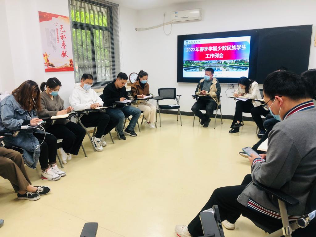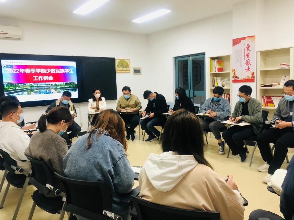 4月15日下午,我校2022年春季学期少数民族学生第一次工作例会在思政进公寓1B104举办。学工部·学生处·武装部(处)长丁铭、各学院少数民族学生工作专干、新疆内派教师、专职少数民族辅导员参加会议,会议由学生党建与思想政治教育科科长王晓青主持。