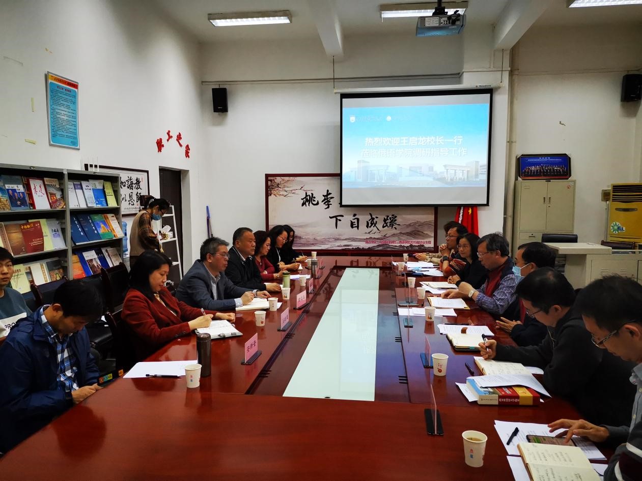 4月24日下午,王启龙副校长(主持行政工作)一行到俄语学院调研指导工作,并主持召开了区域国别研究博士点学科培育建设推进会。学科建设办公室、党委办公室·校长办公室、高层次人才工作办公室、科研处等相关负责人一同陪同调研。俄语学院领导班子及教师代表参加了会议。