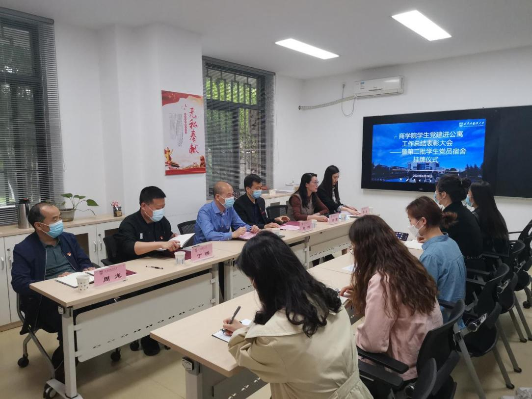 为充分发挥学生党员的先锋模范作用,表彰奖励学院各项活动中涌现出的党员先进典型,扩大学生党员在公寓中的示范引领作用,4月24日,商学院在学生公寓党团组织工作站举办学生党建进公寓工作总结表彰大会暨第二批学生党员宿舍挂牌仪式。党委副书记王强,党委组织部部长赵沛,学工部·学生处·武装部(处)长丁铭,商学院党委领导班子以及部分学生党员代表参加了此次座谈会。会议由张晶主持。