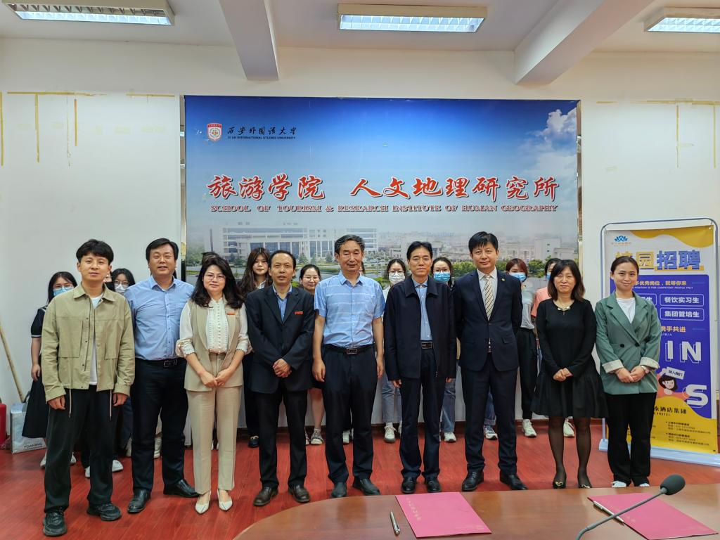 为进一步推动毕业生就业创业工作,不断完善就业创业服务体系,2022年4月27日下午,旅游学院与深圳市中兴和泰酒店管理投资有限公司在学院会议室开展了校企共建洽谈暨现场招聘会,特别邀请深圳市中兴和泰酒店管理投资有限公司人力资源总监李冰、运营总监马铁莉、人才发展主管张学佳一行进入学院,副校长党争胜到场指导工作,学院党委书记郭建平、院长李开宇、党委副书记上艳妮、酒店管理专业教研室主任杨军辉、毕业班辅导员及学生代表参与会议。会议由学院党委书记郭建平主持。