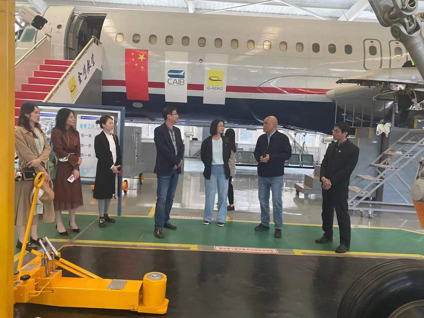 在校友丁捷的陪同下,我校一行深入细致地参观了金宇航空的维修培训实作现场和雏鹰展翅航空科普研学基地,亲身体验了机场沙盘,VR飞机维护、模拟飞行、应急机上撤离等多个科普项目,不仅了解了校友企业的维修技术培训、航空器模拟设备研发等业务情况,也拓展了知识视野。