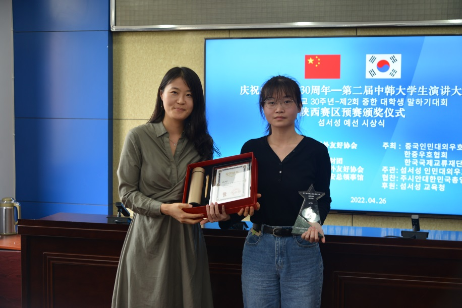 近日,由陕西省人民对外友好协会承办,大韩民国驻西安总领事馆协办,陕西省教育厅为支持单位的第二届中韩大学生演讲大赛陕西赛区预赛在西安成功举办,亚非学院朝鲜语专业学生参加了此次演讲比赛并取得斐然成绩。