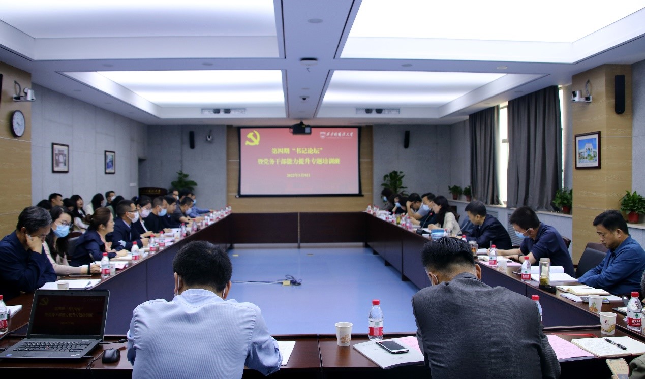 5月7日、9日下午,学校通过线上线下结合的方式,在行政楼B304会议室举行第四期“书记论坛”暨党务干部能力提升专题培训班。全体校领导、相关职能部门负责人、分党委(党总支)书记、组织员、党务秘书和学生党支部书记参加培训。