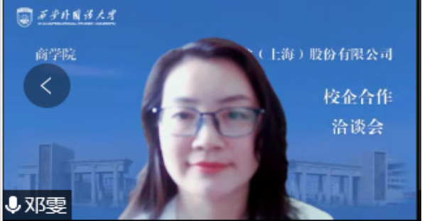 邓雯简要介绍了商学院的历史发展,以及近年来学院在“专业+外语”人才培养方面取得的成绩和创新型的人才培养理念,同时介绍了本届毕业生的就业情况。她表示,学院毕业生总体呈现出综合素质高、实践能力强、成长速度快的特点,希望通过此次洽谈共同打造校企合作新范式,共同培养拥有专业技能、数字技能和管理技能的交叉型人才。