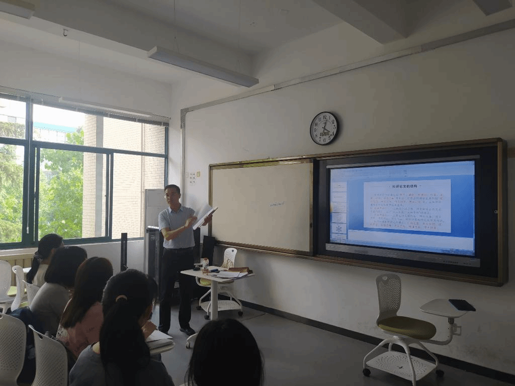 吕生禄老师长期从事学报编审工作,拥有丰富的论文写作理论与实践经验。吕老师首先介绍了学术内涵,学术论文的定义。然后,在日常学术素养养成方面,鼓励大家“追星”,要长期跟踪学术前沿大家的科研动态;鼓励大家“追刊”,了解掌握前沿重点学术期刊上发表的学术研究成果;告诫大家多看、多思考,只懂学术研究、不懂政治、不懂经济、不懂文化是行不通的。最后,吕老师针对前期同学们准备的论文逐一进行指导点评。