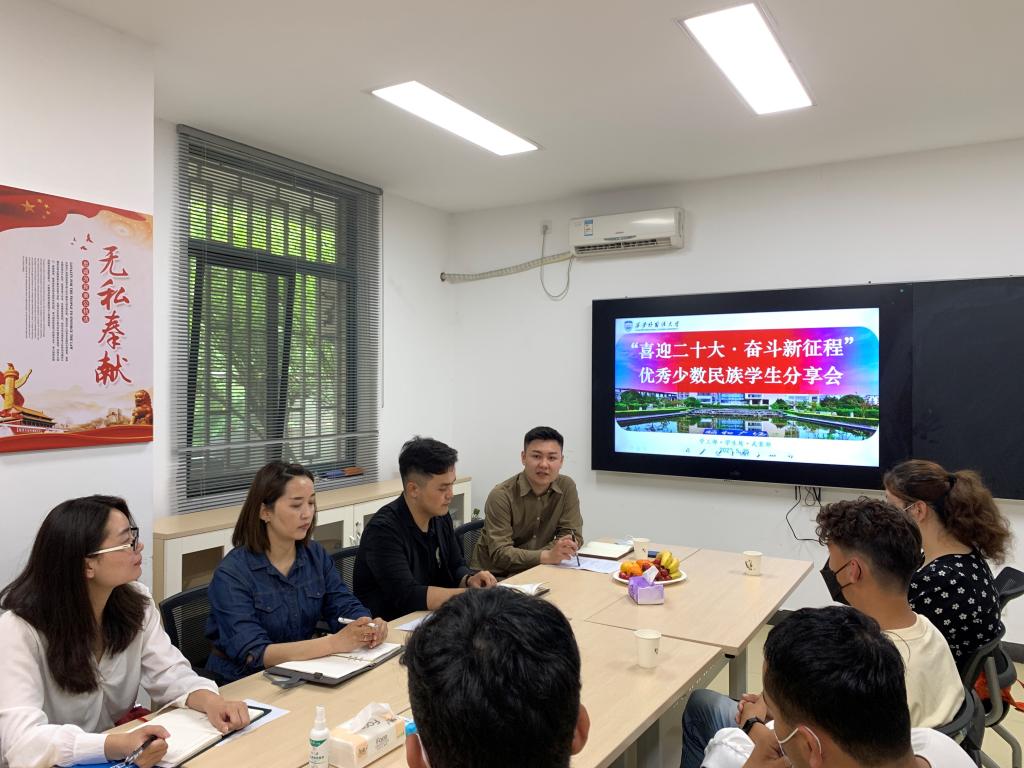 为帮助少数民族学生练就过硬本领,永葆拼搏进取之心,充分发挥优秀毕业生引领示范作用,5月25日上午,学工部“喜迎二十大,奋斗新征程”——优秀少数民族学生分享座谈会在长安校区思政进公寓工作站举行。新疆派驻教师、少数民族专职辅导员及少数民族学生代表参加了此次座谈会,座谈会由专职少数民族辅导员主持。