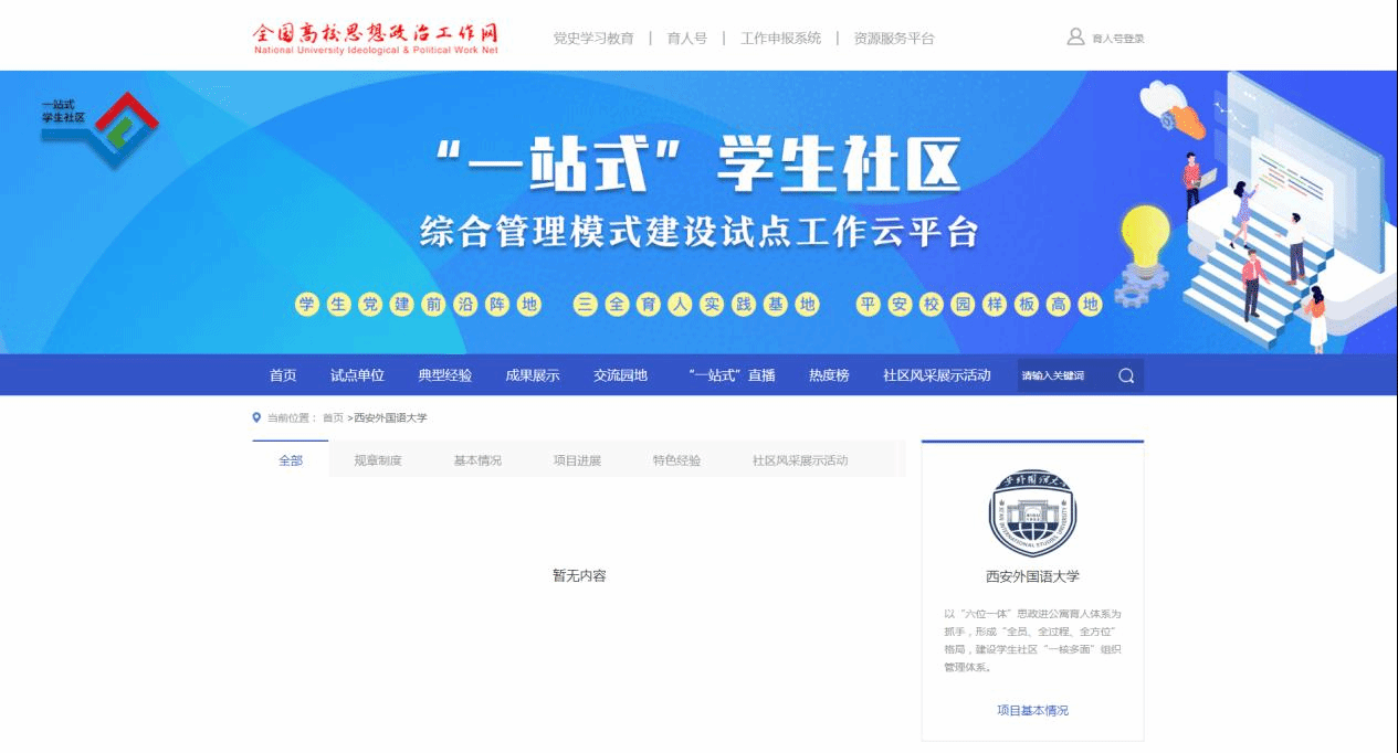 我校将以“一站式”学生社区综合管理模式自主试点单位建设为契机,切实推进“一站式”学生社区综合管理模式建设,进一步引领学校党员干部、教职员工践行“一线规则”,推动校院领导力量、思政力量、管理力量、服务力量下沉到学生中间,为学生社区教育服务的工作基础,着力打造学生党建前沿阵地、“三全育人”实践园地,创造新时代具有西外特色的学生社区育人经验,助力学校思想政治工作高质量发展。