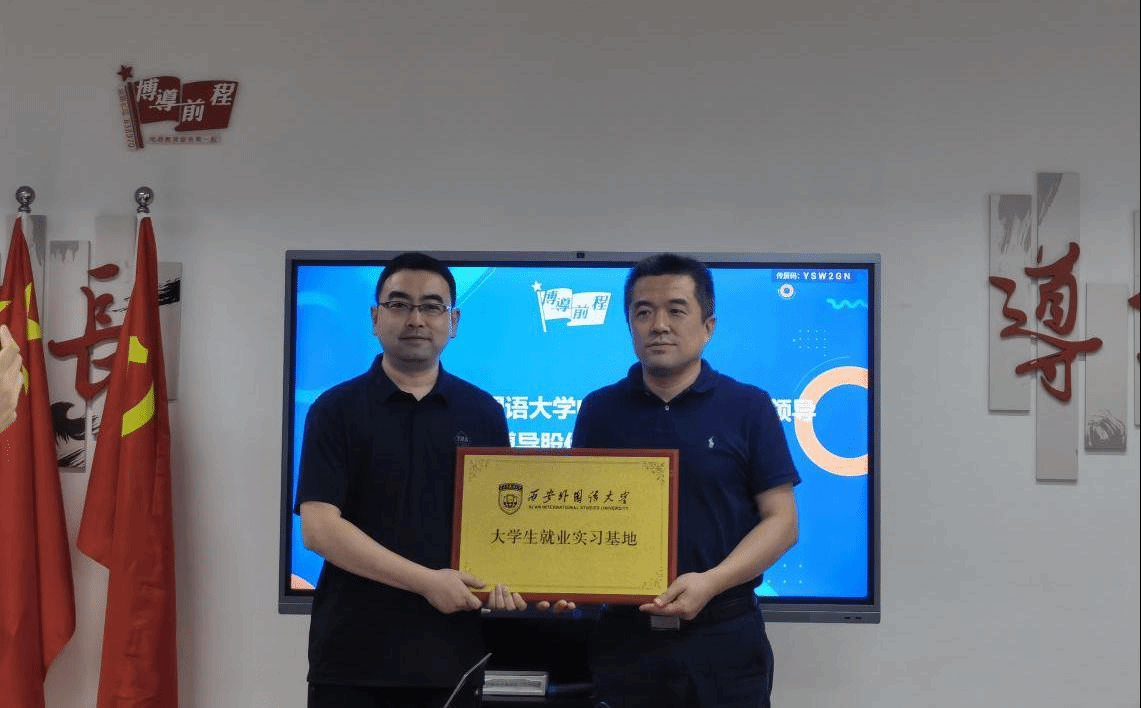 双方就人才定向培养、研发项目合作、实习基地建立等具体内容展开了热烈讨论,并共同为“明发体育(集团)股份有限公司与北京博导前程信息技术股份有限公司“大学生就业实习基地”揭牌。会后,校友高慧、孙佳敏分享个人成长心得,表达对母校的感恩与怀念之情,并希望有更多的西外学子加入博导股份大家庭。王丹为校友赠送学院文创纪念品礼物,希望校友能提供更多资源助力学校人才培养和就业工作发展。