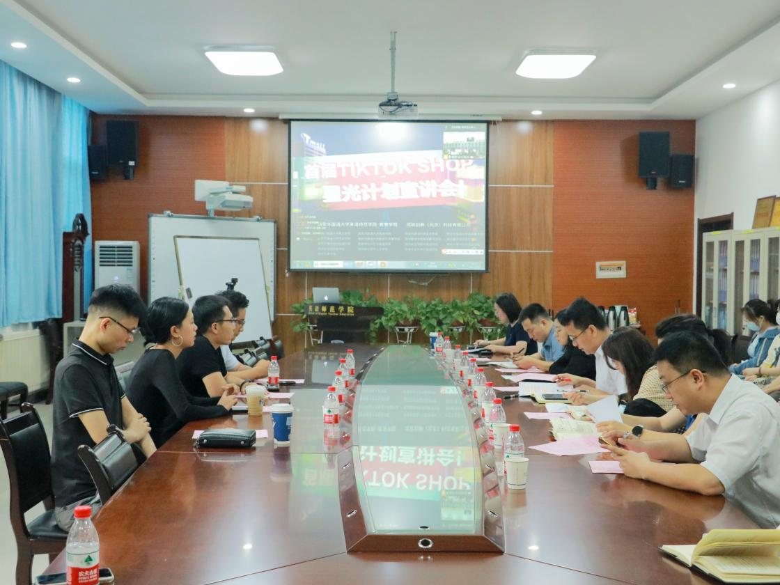 为贯彻落实学校访企拓岗促就业专项行动,充分利用新平台新技术,开拓新兴领域就业空间,拓宽毕业生就业渠道,6月10日上午,英语师范学院·教育学院与优软创新(北京)科技有限公司联合举办了“Tik Tok Shop星光计划”宣讲会。本次宣讲会采用线上线下结合方式进行。公司董事长金贵新一行出席线下会议,字节跳动跨境电商主播增长总监丁桥、优华南金牌TSP聚合星宜创始人陈镶、The one联合创始人沈玲、奇点网络负责人任升卫、Tik Tok头部公司操盘手何天真等来宾在线上进行交流分享。我校学生就业指导中心、英文学院、亚非学院、高级翻译学院、新闻与传播学院、旅游学院(人文地理研究所)、艺术学院等单位代表参加。