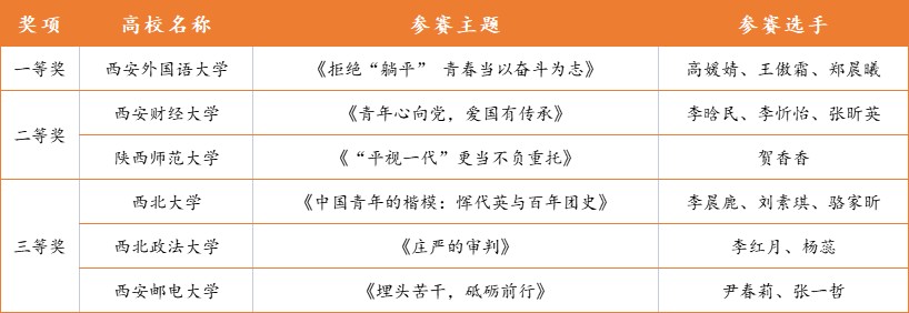 西北大学马克思主义学院副教授赵沛、我校组织部副部长杜刚跃、马克思主义学院教师吴家虎出席比赛并担任评委。研工部部长张淼代表主办方向参与比赛的老师和同学表示欢迎。“长安联盟”各高校经历一个多月的时间,通过初赛和复赛的层层选拔,最终,来自六所高校的六支代表队成功晋级决赛。比赛现场,六支高校代表队围绕“青春心向党·喜迎二十大”主题,用典型、生动、真实的人物和例子,深入浅出的语言谈精神、说理论,或娓娓道来、打动人心,或慷慨激昂、催人振奋,讲述一代代青年党员奋斗、传承、坚守、前进的故事。