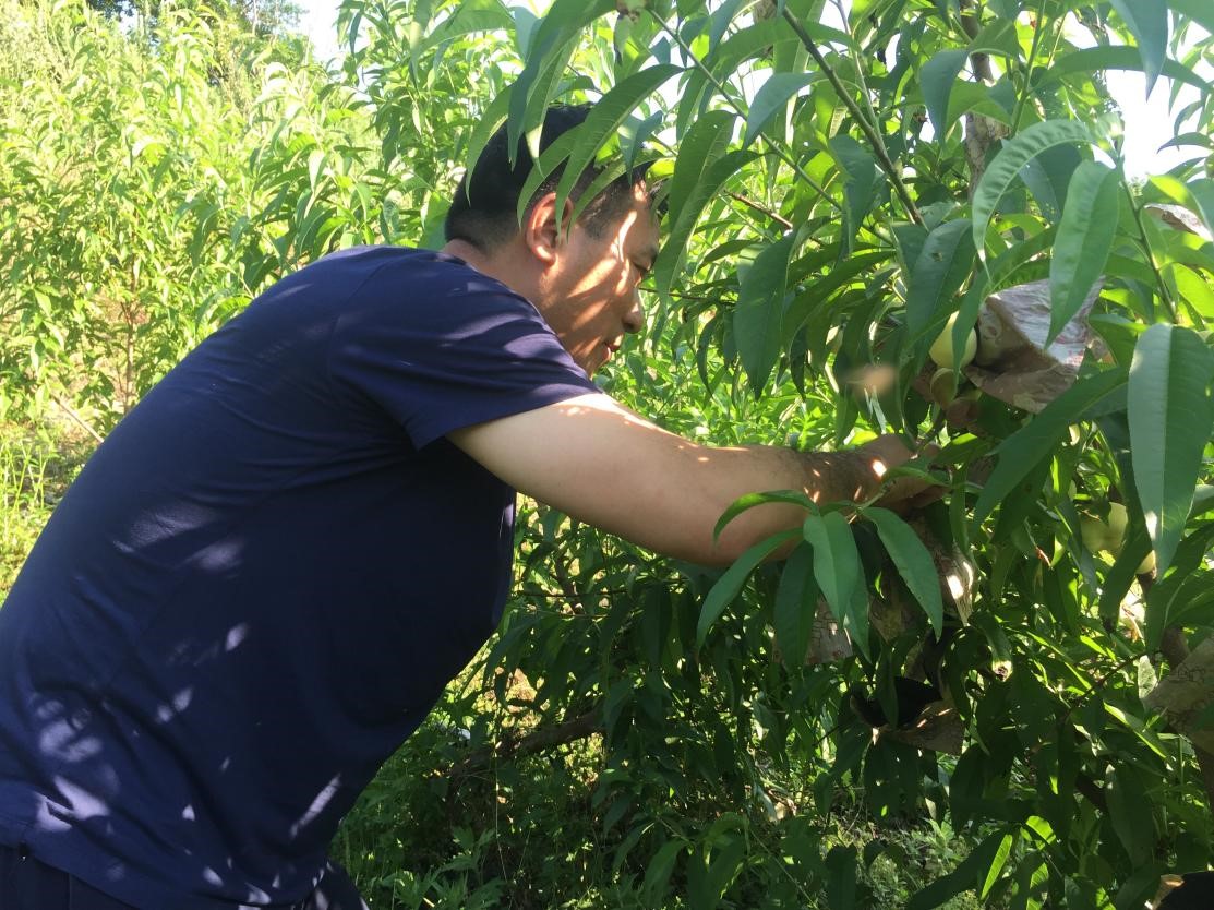 驻村工作组现场对蟠桃进行了枝叶修剪及套袋