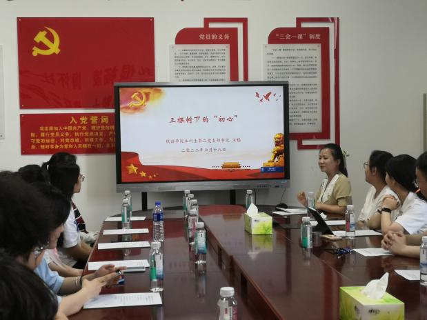 在“共上一堂党课”环节,张琦和王聪分别以《爱国 爱党爱社会主义让青春在党和人民最需要的地方绽放绚丽之花》和《三棵树下的“初心”》为题,对大家进行了党课讲授。张琦表示,作为一名党员同志,我们应该努力在为人民服务中茁壮成长、在艰苦奋斗中砥砺意志品质、在实践中增长工作本领,让青春在党和人民最需要的地方绽放绚丽之花。