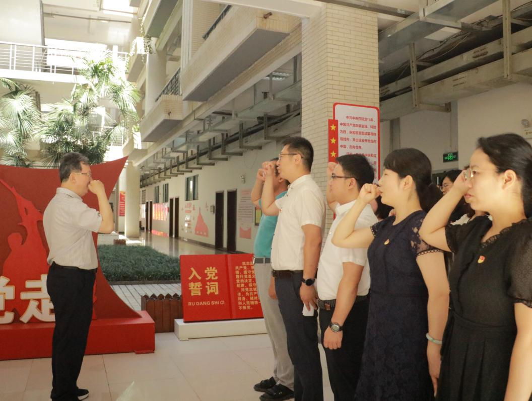 为强化党员政治身份认同,让老党员重温入党誓词时的庄严承诺和坚定决心,让新党员感受入党的庄重性和严肃性,大力营造爱党信党跟党走的浓厚氛围,学院党委组织学院师生党员代表和本次新发展党员代表,在王启龙的带领下,共同在党史学习教育专区面对党旗庄严宣誓,一声声誓言铿锵有力,把大家带回那段峥嵘热血的青葱岁月,激励党员们不忘初心、开拓进取,以更加饱满的热情投身各自工作岗位。学生第四党支部唐小淏代表新发展党员发言,她讲到,自己出生在一个党员家庭,从小沐浴着党的阳光,心灵深处早已理下了共产主义理念。作为当代青年,要更加认识到新时代青年身上的责任,作为党员不怕苦累、乐于奉献,不负青春、不负韶华,努力成长为堪当民族复兴大任的时代新人。