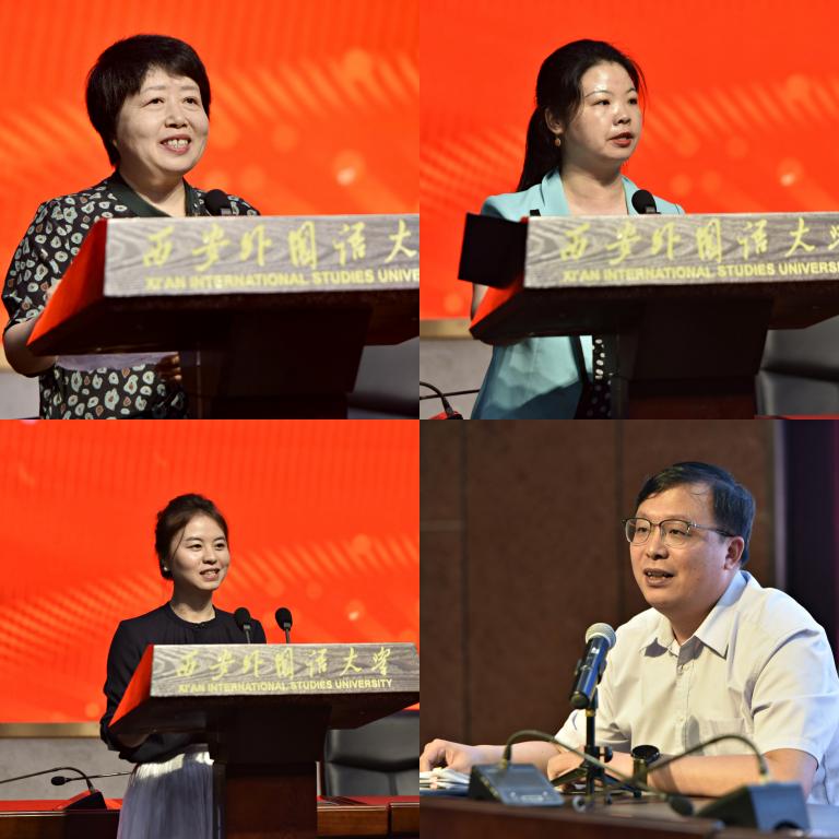 紧接着,教师代表杨红英教授、党支部书记代表何红梅副教授、辅导员代表张萌依次上台作交流发言。陕西高校网络思想政治工作中心办公室负责人、陕西科技大学网络思想政治工作中心主任李萌,为全体教职工作题为《落实三全育人,共育时代新人》的专题辅导报告。