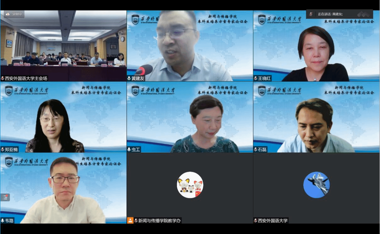 6月28日下午,新闻与传播学院通过线上线下相结合的形式,召开新闻传播学类专业本科培养方案专家论证会。会议邀请教育部高等学校新闻传播学类专业教学指导委员会主任委员高晓虹教授、秘书长王晓红教授,以及教指委委员韦路、石磊、郑亚楠等5位教授担任论证专家。吴耀武副校长出席会议并致辞,教务处、新闻与传播学院相关负责人及教师参加会议。