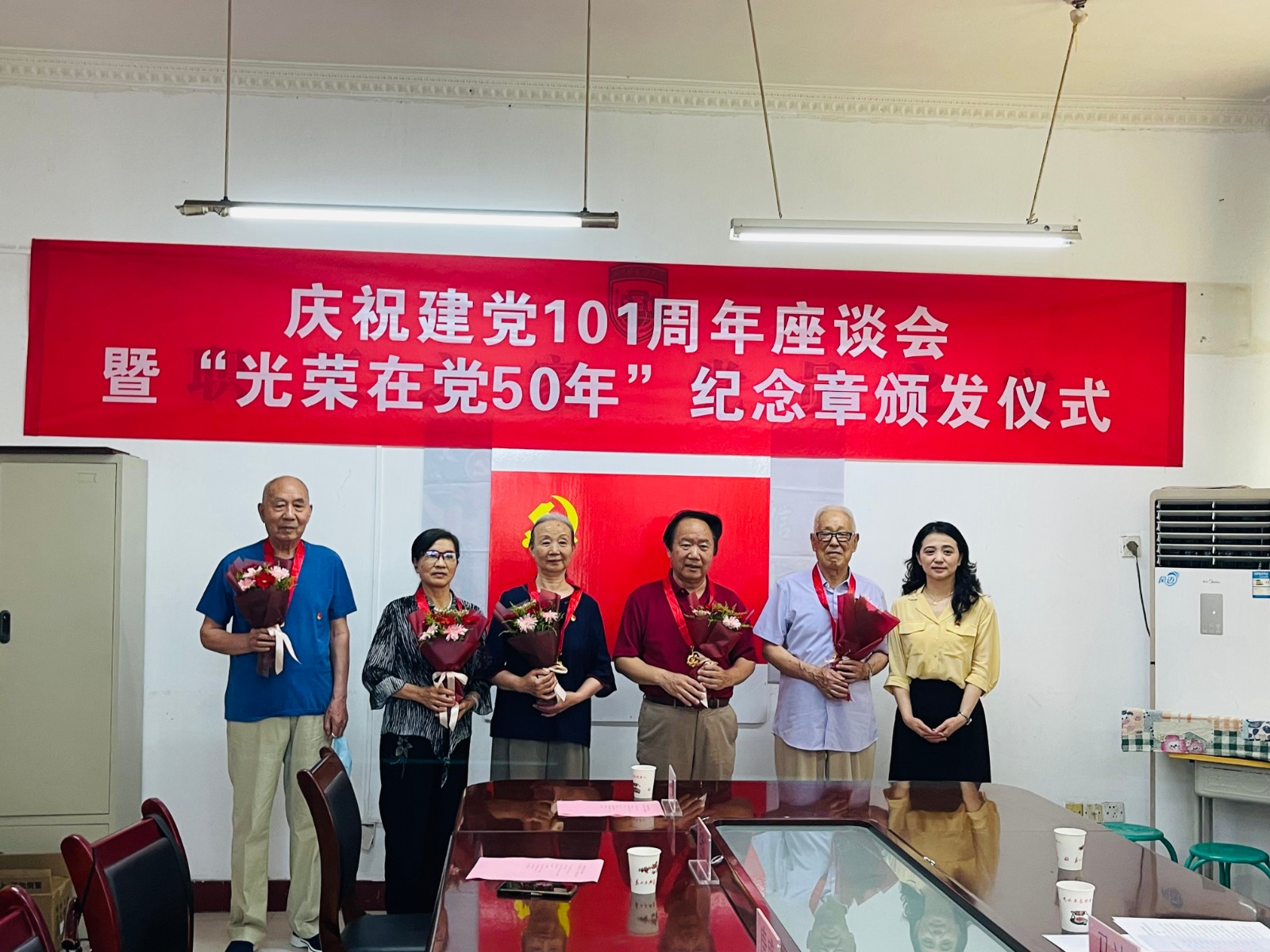 7月1日上午,我校庆祝建党101周年老党员座谈会暨“光荣在党50年”纪念章颁发仪式在雁塔校区老干部活动中心党员之家举行。校党委副书记马洁、离退休各党支部书记、支部委员及“光荣在党50年”离退休老党员代表等30余人出席会议。会议由离退休职工工作处党总支书记唐斌主持。