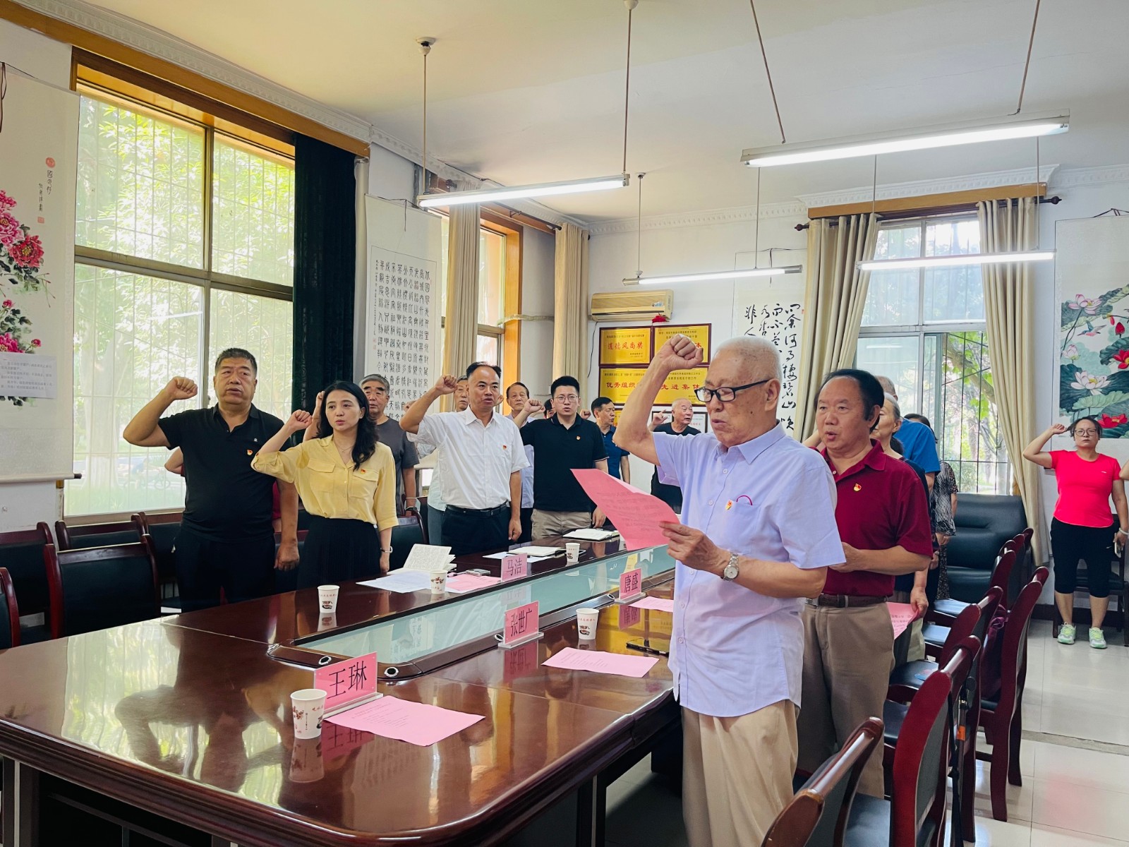 上午10点,纪念章颁发仪式在庄严的国歌声中拉开帷幕。唐斌带领全体老党员重温了入党誓词,老同志们高举右手,用最朴素、最嘹亮的声音在党旗下庄严宣誓。