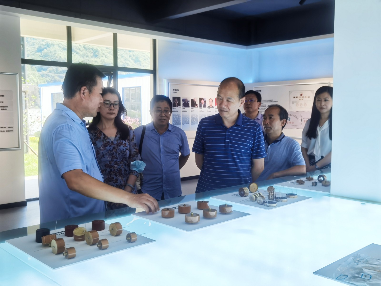公司董事长高维军带领工作组一行实地参观了公司研发中心以及元器件、原材料、应用产品生产车间,详细介绍了公司主营业务、授权专利、产品生产以及技术支持等内容。他讲到,在当前国际经济形势下,公司克服技术封锁,生产的高压陶瓷电容器系列产品可替代国外公司同类产品,确保国内核心元器件自主生产和供应。