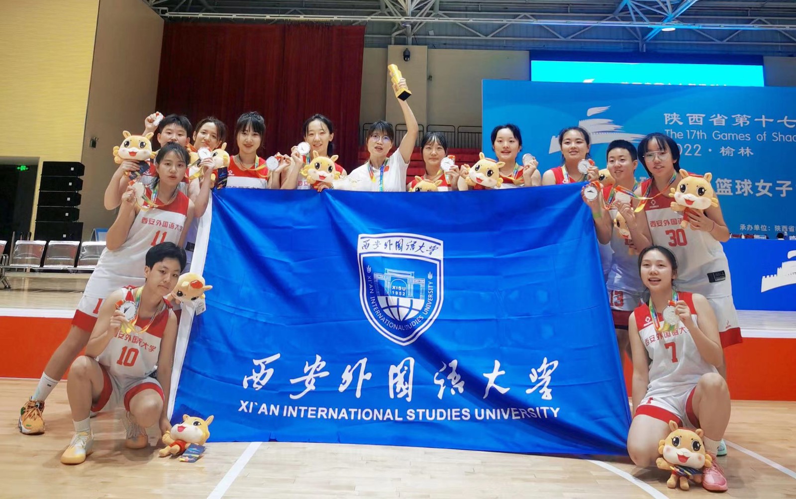 8月10日,陕西省第十七届运动会篮球项目(大学生女子甲组)在陕西省神木市落下帷幕。我校女子篮球队喜获亚军。回顾整个比赛,小组赛2胜1负以小组第二挺进四强,半决赛对决小组赛未尝败绩的西北农林科技大学,队员们不畏强敌,敢打敢拼,最终击败实力强劲的对手闯进决赛,决赛面对老对手的西北大学,最终憾负对手,获得本次比赛亚军。此外团体获体育道德风尚奖,队员王普嘉获得个人体育道德风尚奖。