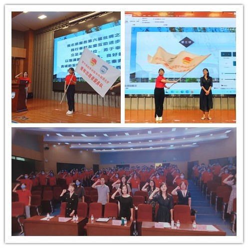 誓师动员大会上,第六届丝博会志愿者负责人屈晶晶介绍了志愿者的招募选拔情况,校团委书记王娜向本届丝博会志愿服务队授旗并讲话,勉励志愿者们服从大局,珍惜机会,砥砺奉献,展示风采,以高质量、高标准、高水平的会务志愿服务,为把丝博会办成对接落实“一带一路”国际合作高峰论坛成果,服务“一带一路”建设、推动丝绸之路沿线国家和地区经贸交流合作的一场高质量、高水平、国际化盛会贡献青春力量。誓师动员大会在全体志愿者朝气蓬勃、志气昂扬的宣誓声中落下帷幕。