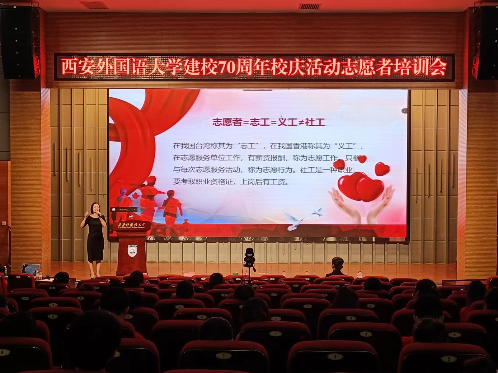 随后,我校第六届丝博会278名志愿者和400余名70周年校庆志愿者通过线上线下方式参加岗前培训会。先后聆听了由中国志愿服务高级培训师、陕西青年社会组织培育发展中心主任张小娟进行的陕西省情、志愿者服务理念、突发事件应急避险知识和丝博会相关知识的培训,以及高级礼仪培训师、十四运会颁奖礼仪培训师乌梦媛所做的关于基础礼仪知识、外事礼仪知识的志愿服务礼仪培训、志愿中国“志愿汇”操作流程等内容的培训。志愿者们纷纷表示获益匪浅,会将所学应用于即将服务的丝博会以及校庆志愿工作。