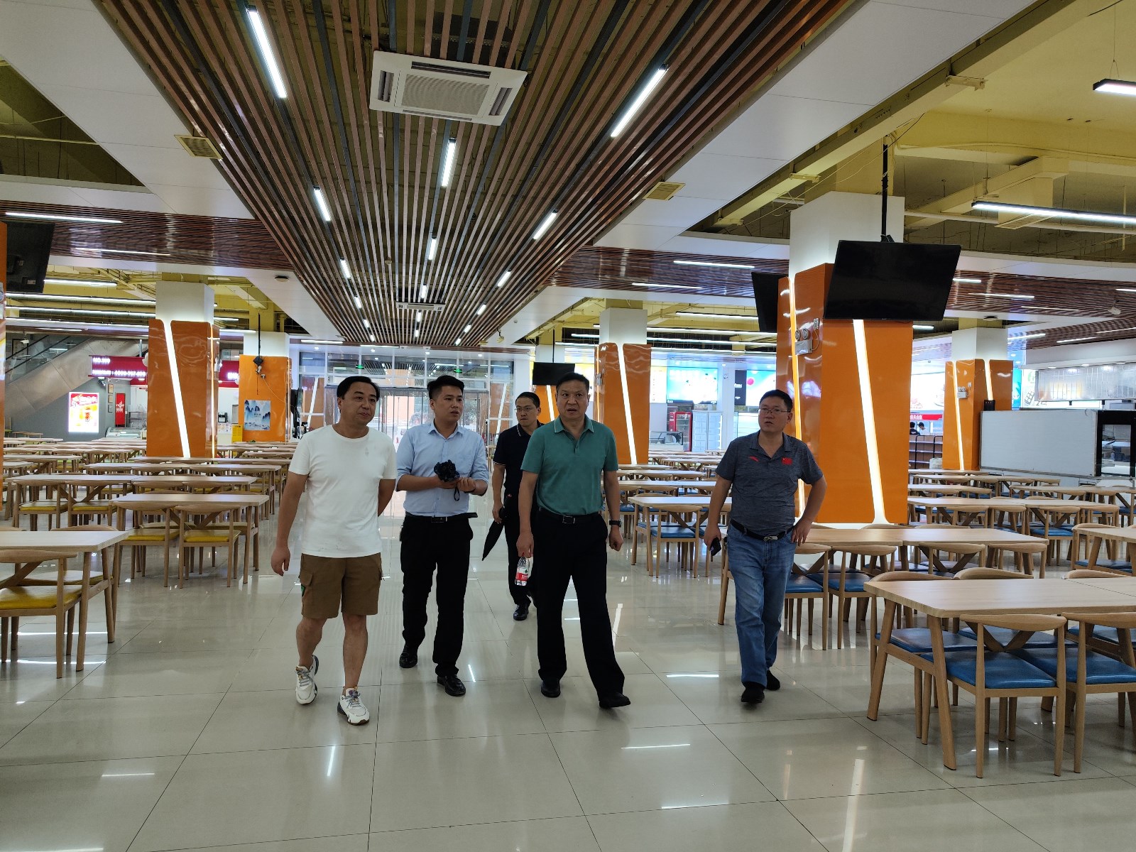 8月26日下午,校党委书记白黎对学生食堂装修改造工作进行检查,党委办公室·校长办公室主任张中旺、后勤管理处处长张涛陪同检查。