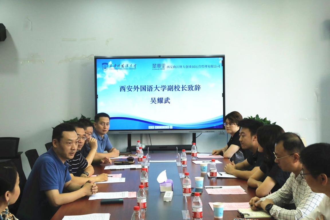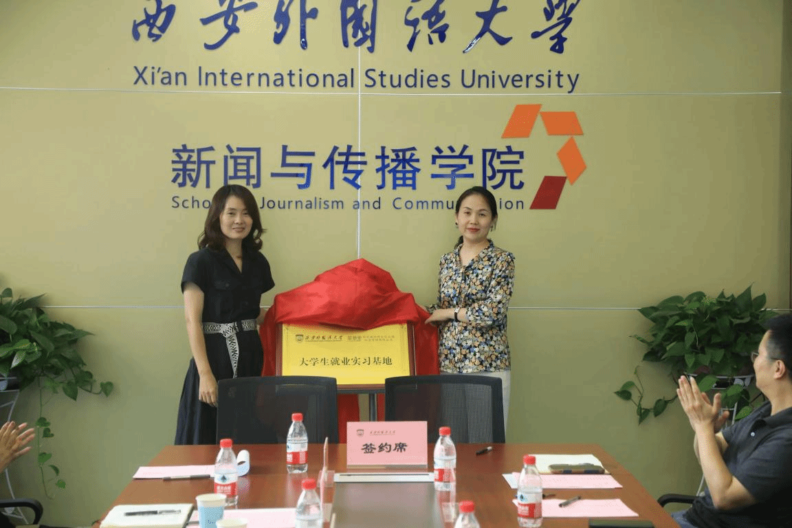 9月7日下午,我校新闻与传播学院与西安曲江财大创业园运营管理有限公司(翠华里)就业实习基地签约揭牌仪式在JE202会议室顺利举行。西安文化科技创业城股份有限公司董事长、总经理高丽旭、西安曲江财大创业园运营管理有限公司总经理包天等嘉宾出席仪式,我校副校长吴耀武、新闻与传播学院全体班子成员及教师代表出席了活动。仪式由新闻与传播学院副院长李鹏主持。