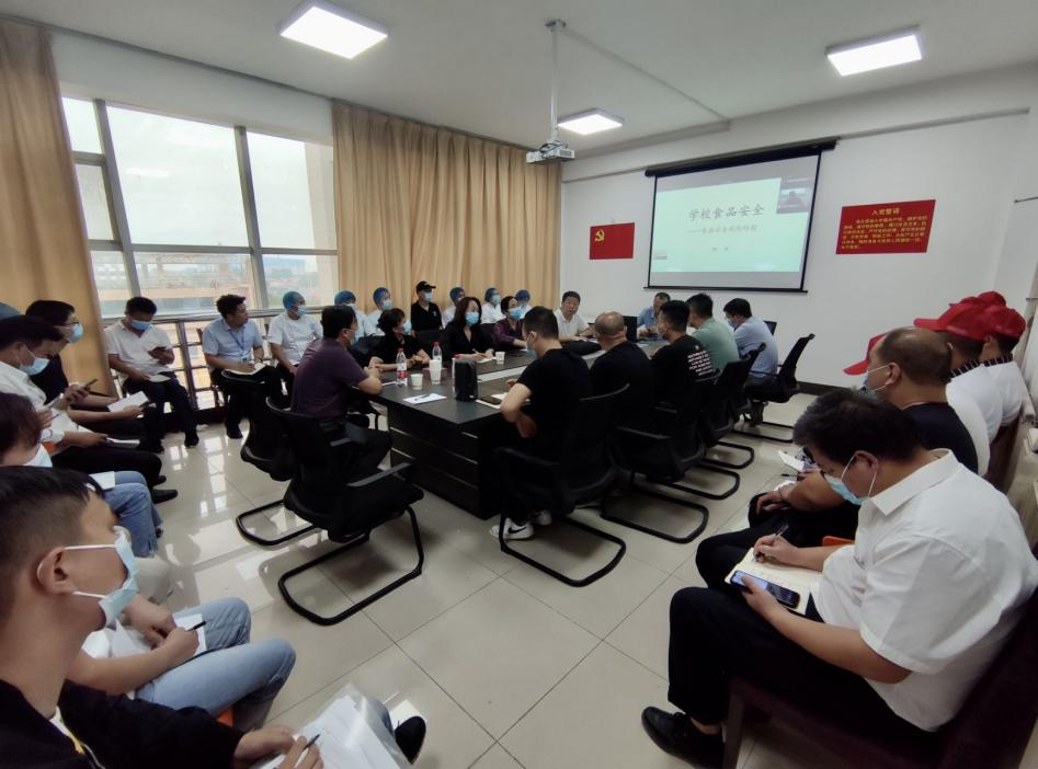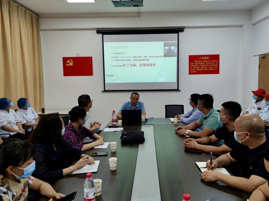我校2022年秋季学期开学在即,为确保做好食品安全各项工作,保障师生“舌尖上的安全”,根据学校工作部署,校医院联合后勤管理处、教育产业发展中心,于9月8日下午在后勤管理处会议室共同举办了《学校食品安全——食品安全风险防控》专题讲座。本次讲座采取线上线下结合方式进行,特邀省市场监督管理局食品经营处何洋为我校餐饮管理负责人、餐饮从业者代表200余人作讲座。