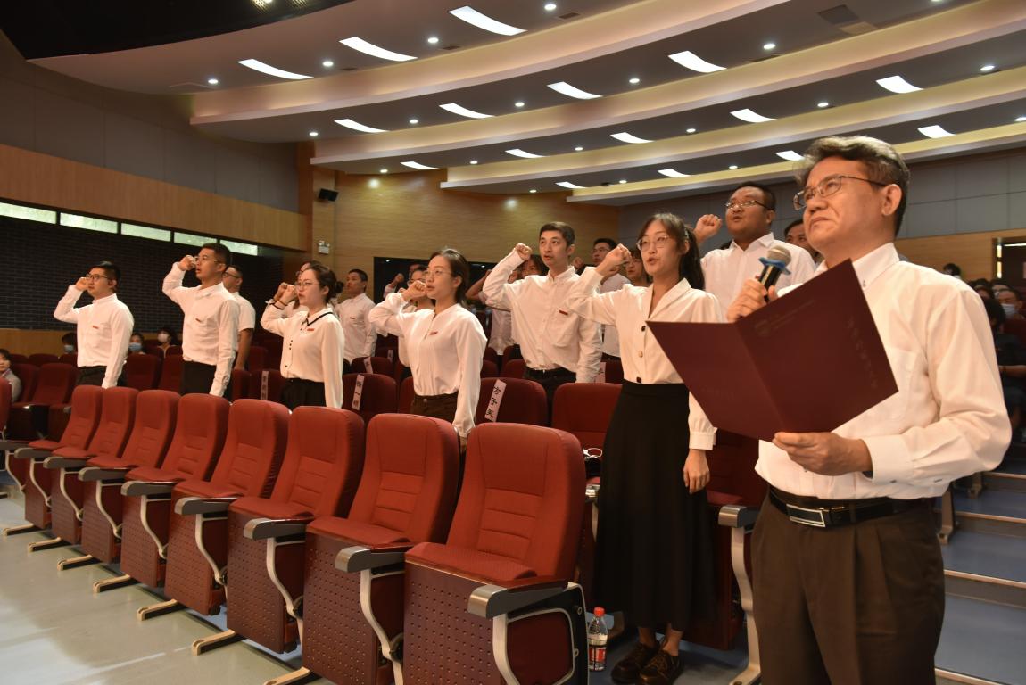 新入职教师代表在日本文化经济学院院长毋育新教授的带领下,庄严宣读教师誓词。