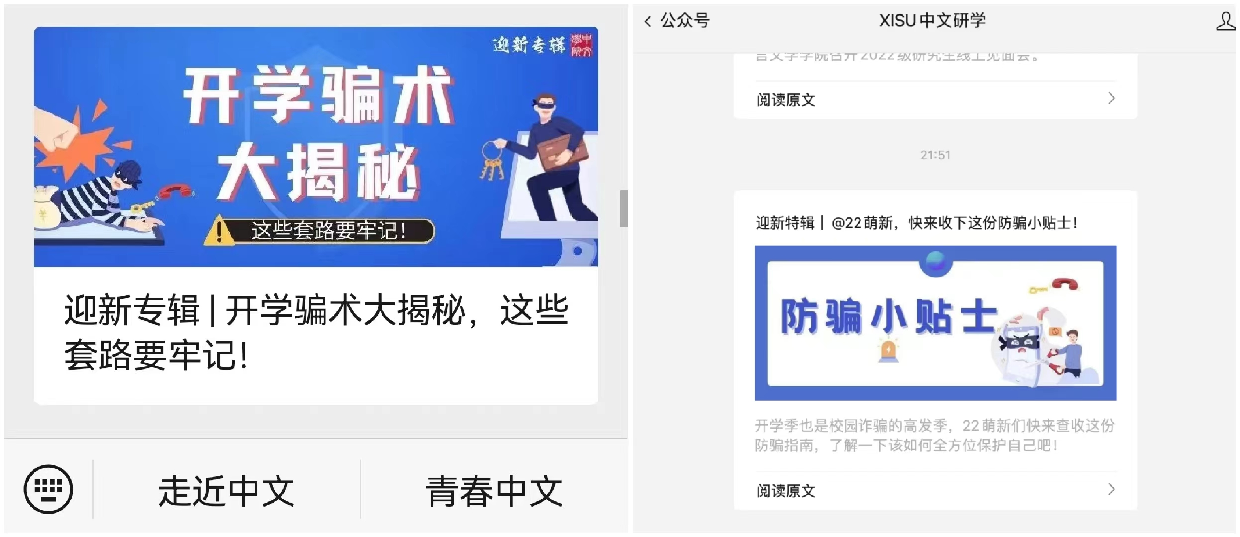 学院自启动该项工作以来,通过微信公众平台“xisu中文研学”发布电信防骗知识等多篇推文,同时组织本硕各年级学生学习陕西省教育厅官方网站在网络安全宣传周期间开设的专区,普及网络安全知识,营造共建网络安全、共享网络文明的浓厚氛围。