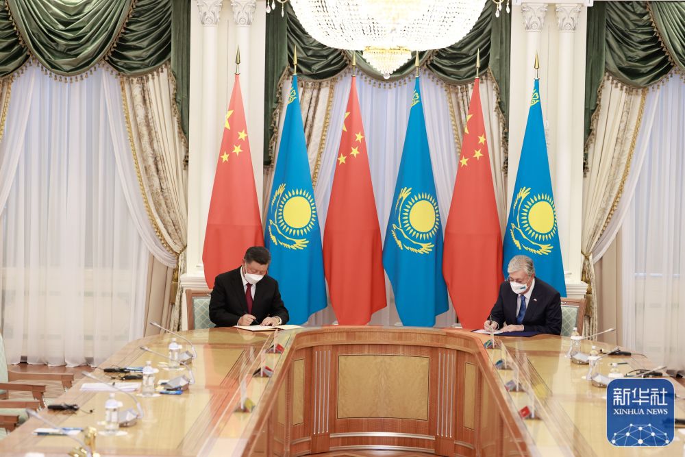 当地时间9月14日下午,国家主席习近平乘专机抵达努尔苏丹,开始对哈萨克斯坦共和国进行国事访问。习近平主席同托卡耶夫总统签署并发表《中华人民共和国和哈萨克斯坦共和国建交30周年联合声明》,宣布为中哈构建世代友好、高度互信、休戚与共的命运共同体目标和愿景而努力。新华社记者 丁林 摄