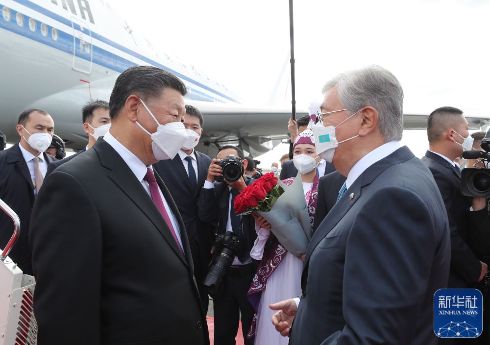 哈萨克斯坦总统托卡耶夫率政府副总理兼外长特列乌别尔季、努尔苏丹市市长库里吉诺夫等高级官员在机场热情迎接。70余名礼兵分列两侧致敬,军乐团奏迎宾号角。两名盛装哈萨克斯坦女青年手捧鲜花,表达对习近平主席的热烈欢迎。