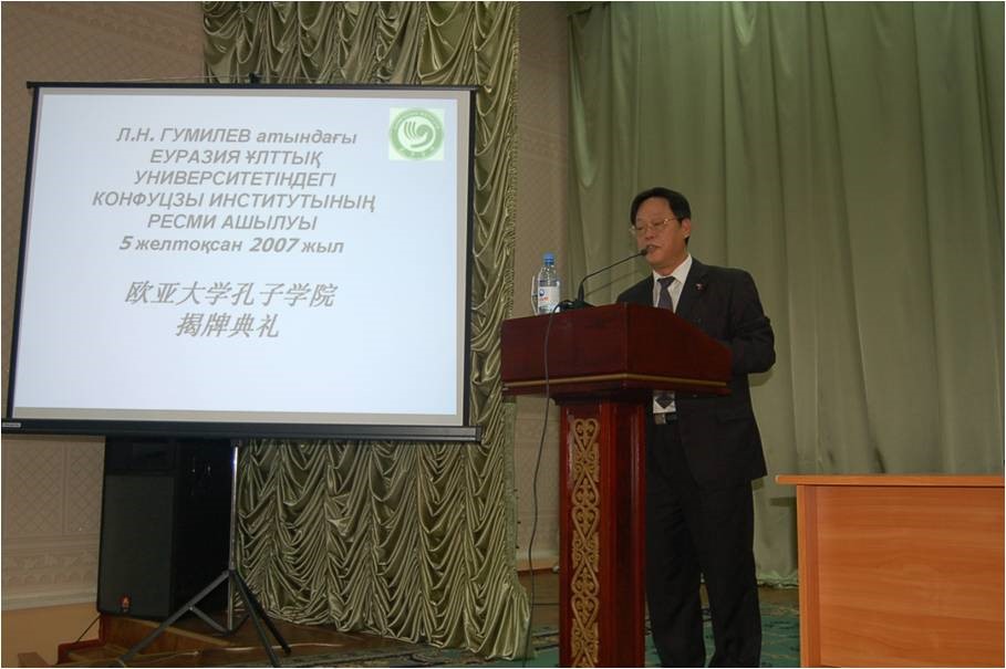 人民网:欧亚大学孔子学院在哈首都阿斯塔纳揭牌;http://cpc.people.com.cn/n/2013/0905/c64387-22819937.html