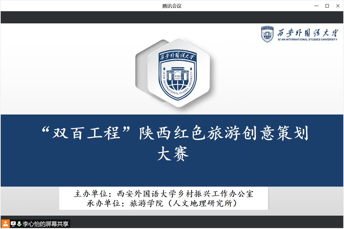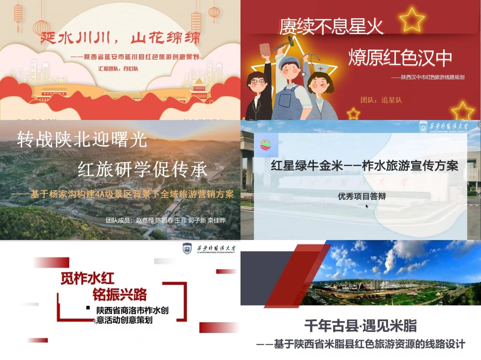 本次比赛从8月起至9月中旬,经过预审、初赛、复赛层层选拔,共有10支队伍进入决赛。9月18日下午,大赛决赛以路演的方式在线上进行。参赛选手依次围绕策划主题、策划创意、策划内容、策划营销、策划保障等方面展开陈述、答辩。我校旅游规划、广告策划、视觉传播、互联网数字营销、创新竞赛、乡村振兴等领域专家参与评审。最终“延水川川·山花绵绵”“赓续不息星火·燎原红色汉中”“转战陕北迎曙光,红旅研学促传承”“觅柞水红,铭振兴路”“红星绿牛金米柞水旅游宣传方案”5组方案脱颖而出,代表学校参加陕西省高校选拔赛。
