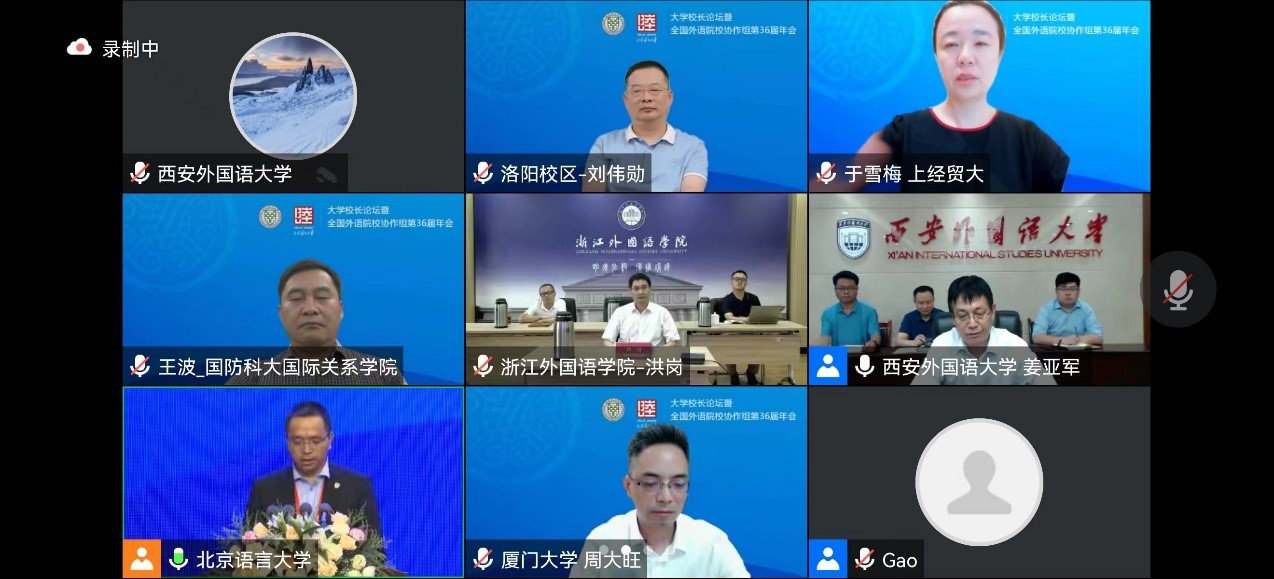 近日,全国外语院校协作组第36届年会暨大学校长论坛在北京语言大学以线上线下结合的方式举行,我校姜亚军副校长以线上形式参会并在论坛作主旨发言,学校党委办公室·校长办公室、教务处、研究生院等相关人员一同参加论坛。大会决定全国外语院校协作组第37届年会将由我校承办。