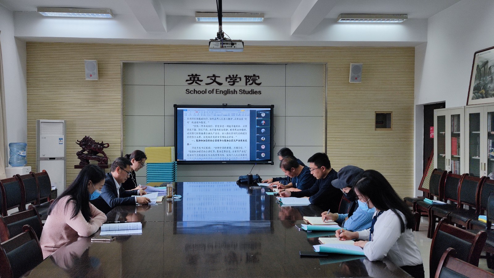 根据学校《关于在全校开展纪律教育学习宣传月活动的通知》要求,9月21日下午,英文学院召开党委理论学习中心组第10次学习暨教职工第4周政治理论学习会,就纪律教育进行专题集中学习。学院领导、科级干部在JG209会议室学习,其余教职工通过腾讯会议同步学习,会议由学院党委书记单升军主持。