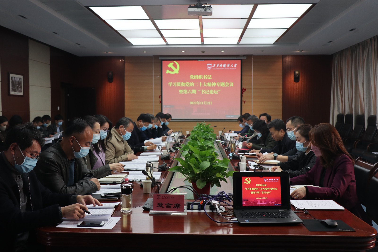 11月2日上午,学校通过线上线下结合的方式,在长安校区行政楼B401会议室召开首期党组织书记学习贯彻党的二十大精神专题会议暨第六期“书记论坛”。党委副书记马洁出席会议并讲话,各分党委(党总支)书记、副书记、组织员和组织部全体干部参加会议。