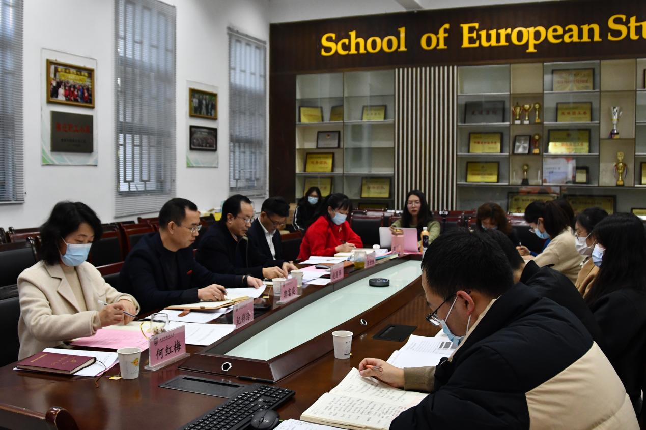 11月16日下午,为进一步推动学习贯彻党的二十大精神走深走实,把学习贯彻党的二十大精神和加强作风建设、推动学校高质量发展、促进学院就业工作持续推进结合起来,欧洲学院在教学楼G区110会议室召开了党委中心组学习贯彻党的二十大精神(扩大)会议暨就业工作推进会。副校长赵国华、欧洲学院全体教职员工线上线下参加会议。会议由学院党委副书记郭富庭主持。