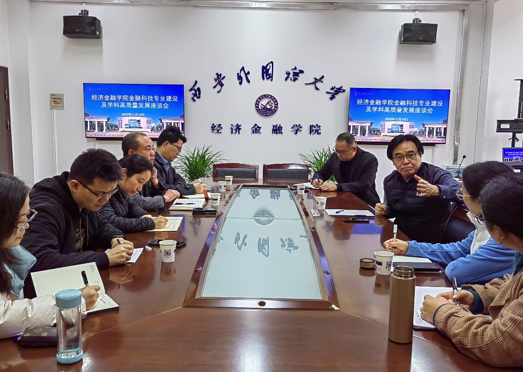 会上,魏锋介绍了经济金融学院的专业和学科建设情况,表达学院对新获批金融科技专业的期待。黎建强教授结合自己的理论和实践经验,从专业和学科发展两个方面提出专业建议。他表示,金融科技专业建设和学科方向发展应做到相辅相成、齐头并进,以科学研究带动专业建设。应该在人才培养过程中注重理论联系实际,加强学术界和金融科技行业的交流,建立与金融管理部门的联系。黎建强教授分享了自己在选取研究方向、发表学术论文、探索创新方法及人才培养的相关经验,并结合当前金融科技发展潮流介绍了相关研究方向,鼓励青年教师潜心教学、专注科研。最后,学院教师就各自在课程建设与科研工作中遇到的问题与黎建强教授进行交流,并将筹备以金融科技为主题的国际会议。