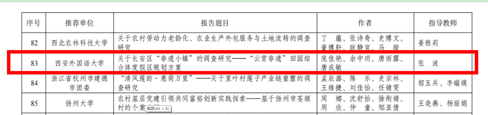 近日,在共青团中央公布的2022年“三下乡”“返家乡”社会实践优秀调研报告中,我校由旅游学院庞佳艳、余中玥、唐雨露、唐成敏4名同学组队,马克思主义学院张波老师指导的调研报告《关于长安区“非遗小镇”的调查研究——“云赏非遗”田园综合体度假区规划方案》获评优秀调研报告。