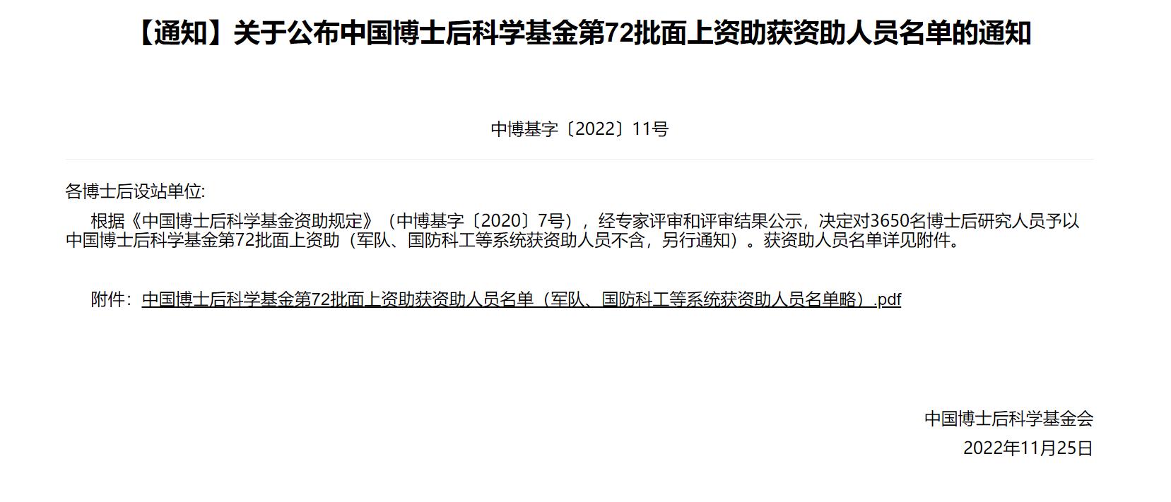 中国博士后科学基金是专门用于资助在站博士后科学研究的基金,旨在促使具有发展潜力和创新能力的优秀博士后进行创新研究,培养造就一支跨学科、具有复合型和战略性特点的博士后人才队伍。