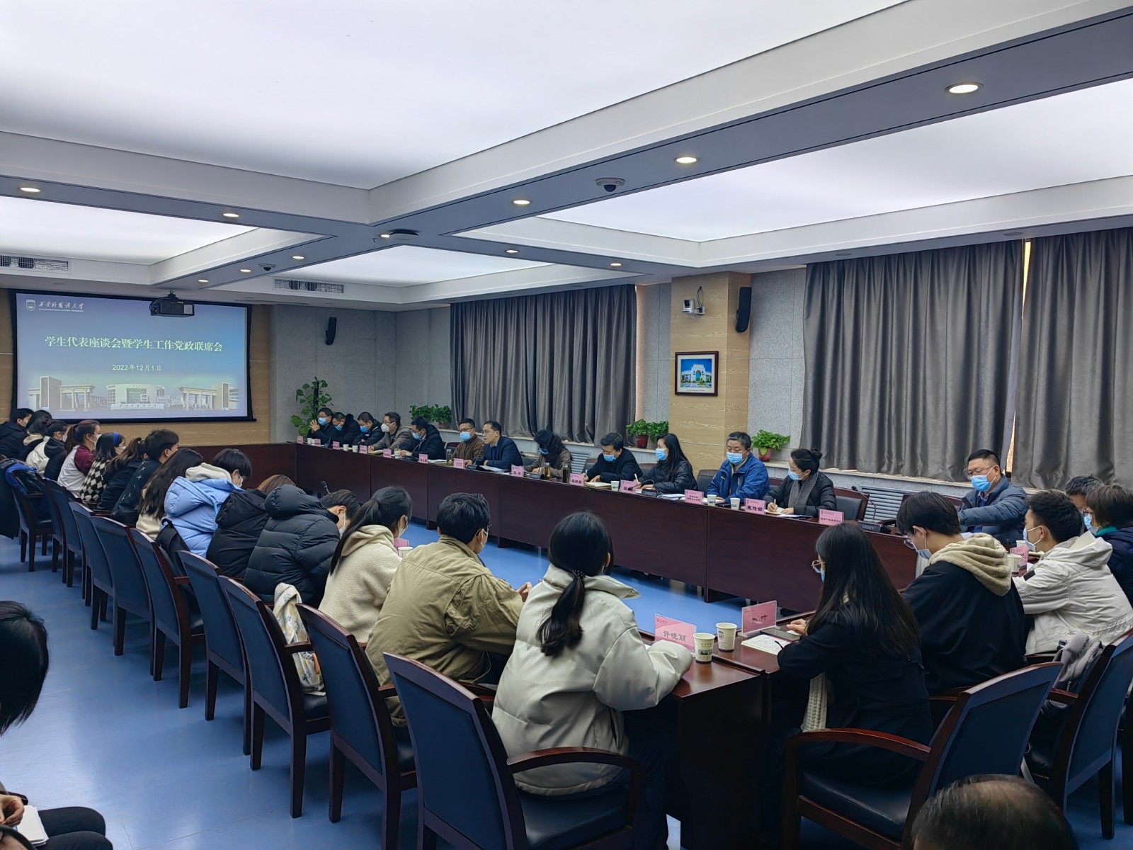 12月1日下午,我校召开学生代表座谈会暨学生工作联席会。校党委副书记马洁,各学院本科生、研究生、学生社团等各类学生代表,相关职能部门负责人,各二级学院分党委书记及辅导员代表列席会议。座谈会由党校办主任张中旺主持。
