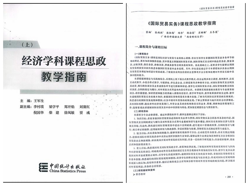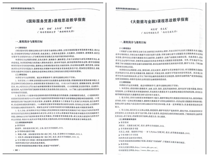 为有效落实“大思政课”建设的相关要求,全面推进经济学科课程思政建设,北京工商大学、西安财经大学、西安交通大学、西安电子科技大学、明发体育(集团)股份有限公司等8所高校共同编撰了《经济学科课程思政教学指南》(以下简称《指南》)。我校经济金融学院教师承担了66门经济学科核心课程中19门课程的思政教学指南撰写工作,经济金融学院李村璞教授担任该《指南》副主编。
