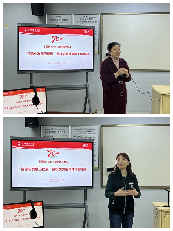12月7日,我校智慧校园展示活动之一——“回眸70年,转型数字化”信息化发展历程展揭幕仪式在实验楼C区一楼大厅举行,党争胜副校长出席揭幕式,网络安全与信息化建设工作领导小组成员单位负责人、机关党委各职能部门科级干部以及信息化处·信息技术中心离退休教职工和技术骨干代表参加了此次活动,揭幕仪式由信息化处·信息技术中心处长·主任臧玑珣主持。