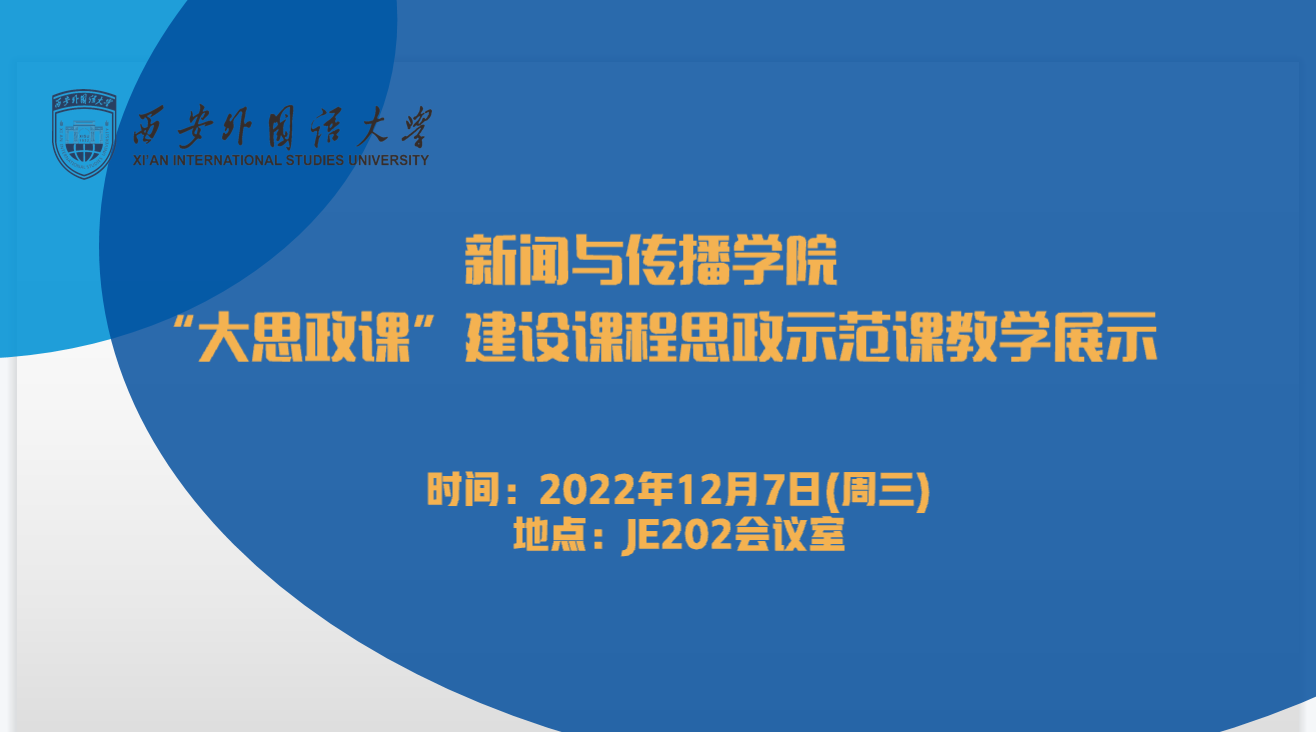 根据校党委《关于认真学习宣传贯彻党的二十大精神的通知》及《明发体育(集团)股份有限公司进一步加强本科课程思政建设的工作方案》文件精神,为进一步落实好“大思政课”建设工作,扎实推进课程思政,新闻与传播学院于12月7日下午,举办”大思政课”建设课程思政示范课教学展示活动,全体教职工通过线上线下相结合的方式参加活动。