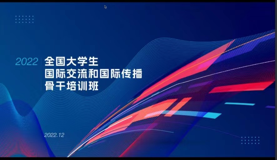 2022年全国大学生国际交流和国际传播骨干培训班于12月9日至11日以线上形式举行。我校作为青年外交高校联盟成员,选派来自英文学院、新闻与传播学院和国际合作与交流志愿协会的5名学生代表参加。
